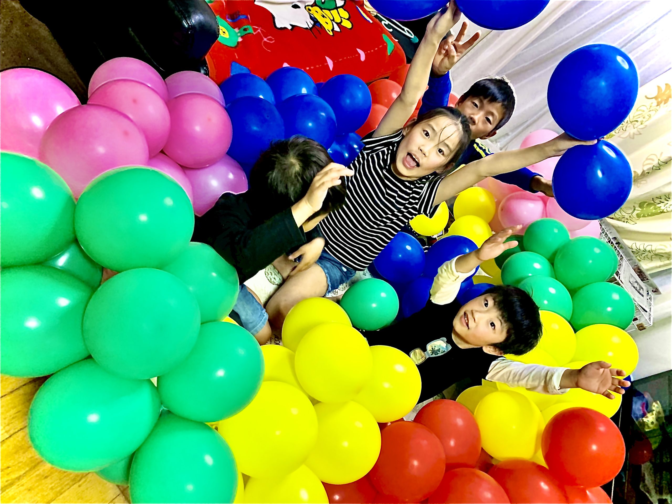 誕生日パーティーが終わった後は、デコレーションに使用した沢山のバルーンに囲まれて子供達は大はしゃぎでした😊