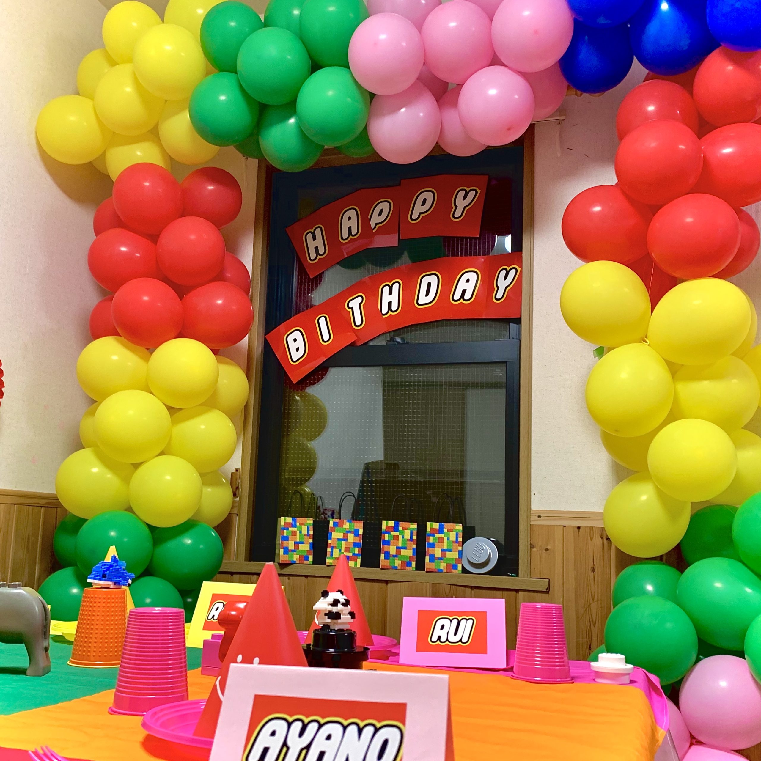 バルーンもLEGO風カラーにし、テーブルデコレーションも実際にLEGOを使用しながらセッティングし、LEGOの世界観を演出しました。