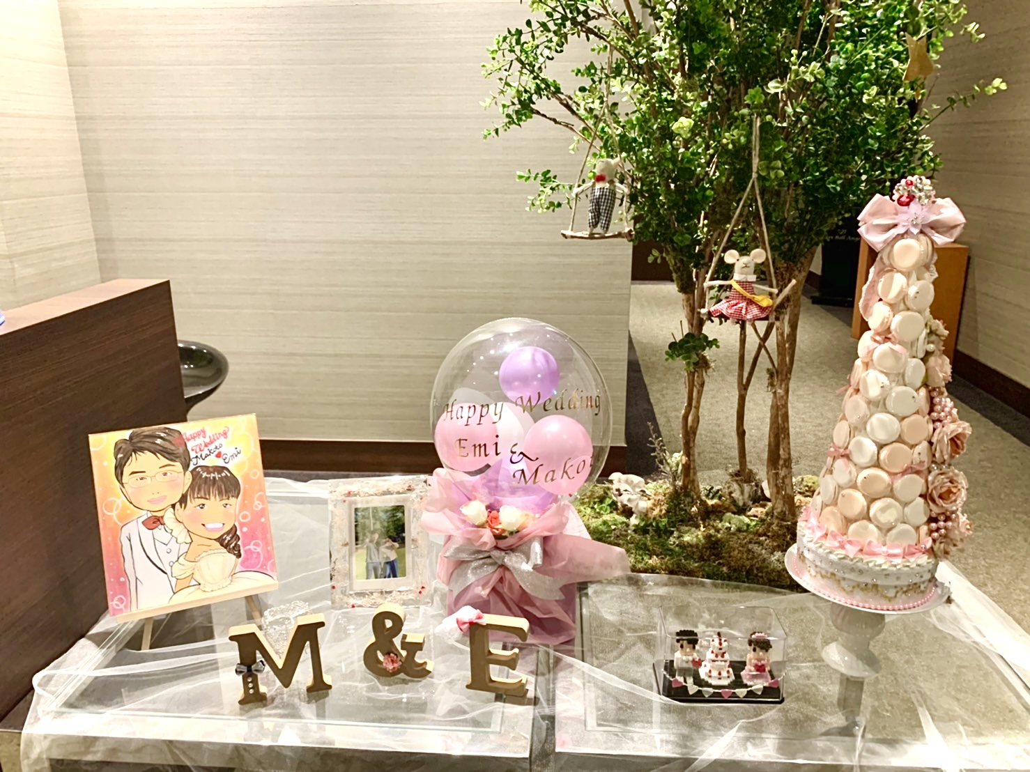 淡いピンクのバルーンを使用しているので、ウェルカムスペースはふんわり優しい雰囲気になりました✨☺️