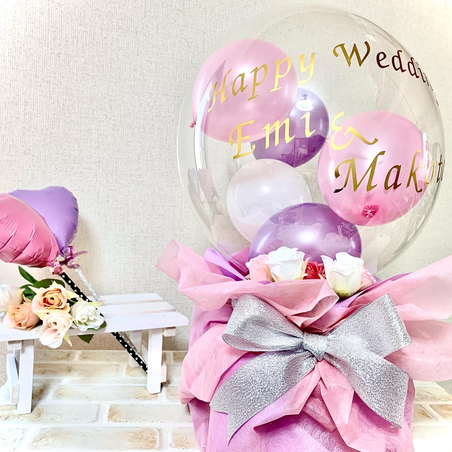 ピンクと紫を使ったウェディングバルーンです🎈✨