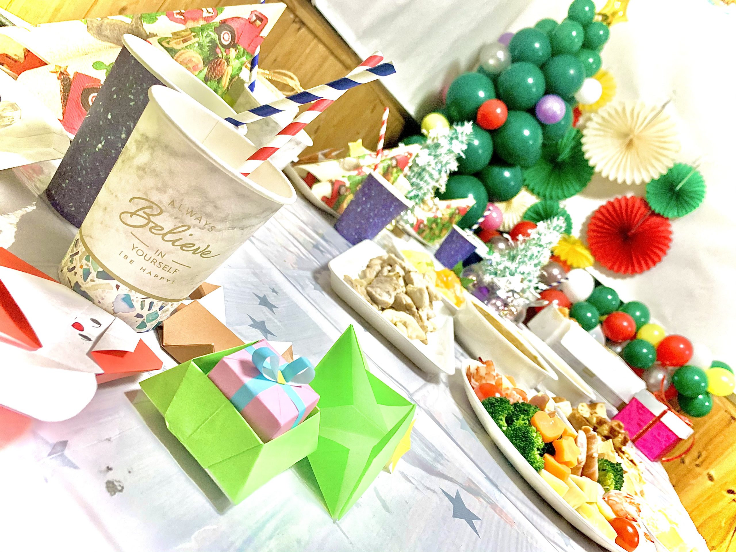 バルーンでクリスマスツリーを作り、デコレーションしました🎈✨🎄