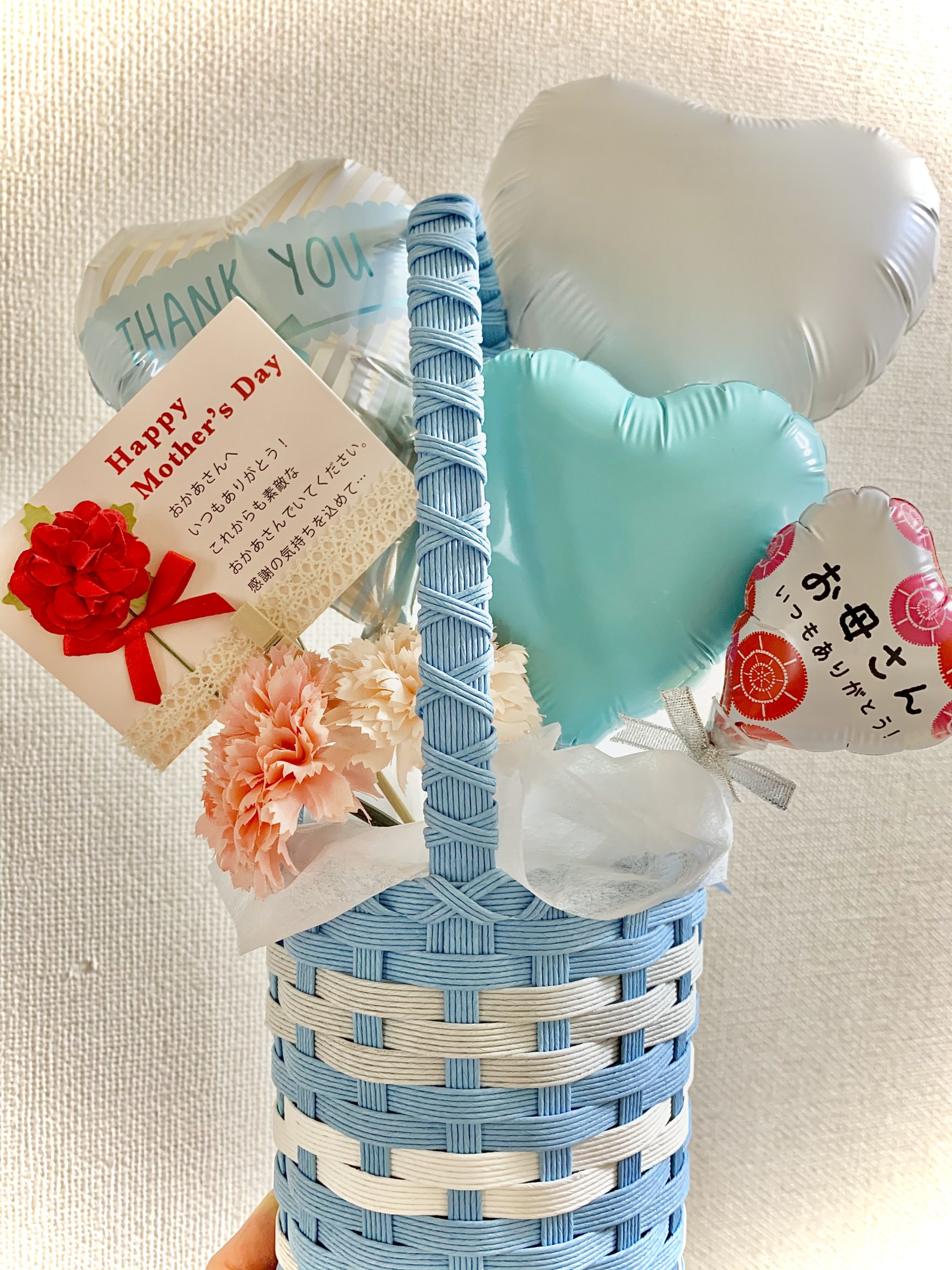 お客様から『私のお母さんは水色が好きなんです。全体的に水色を使ったバルーンギフトは出来ませんか?』というご要望をお聞きして、完成した母の日バルーンギフトです😊