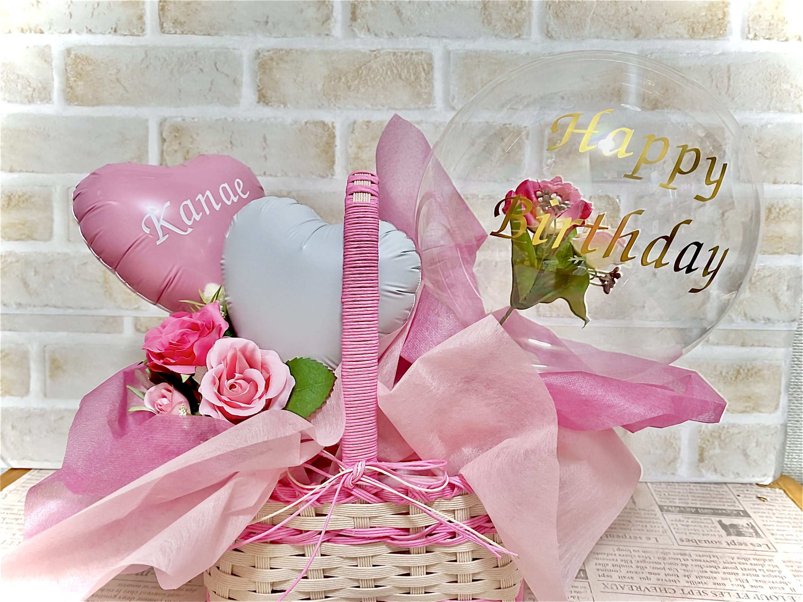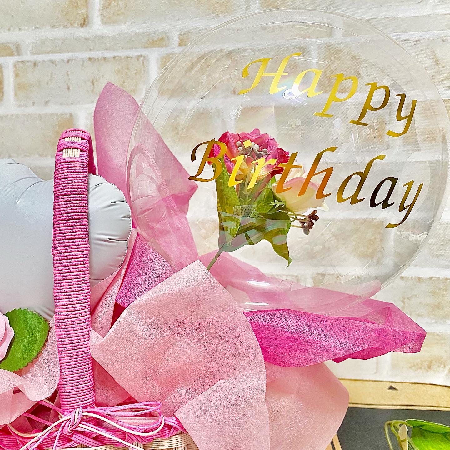 ピンクで女性向けの誕生日バルーンギフトです✨