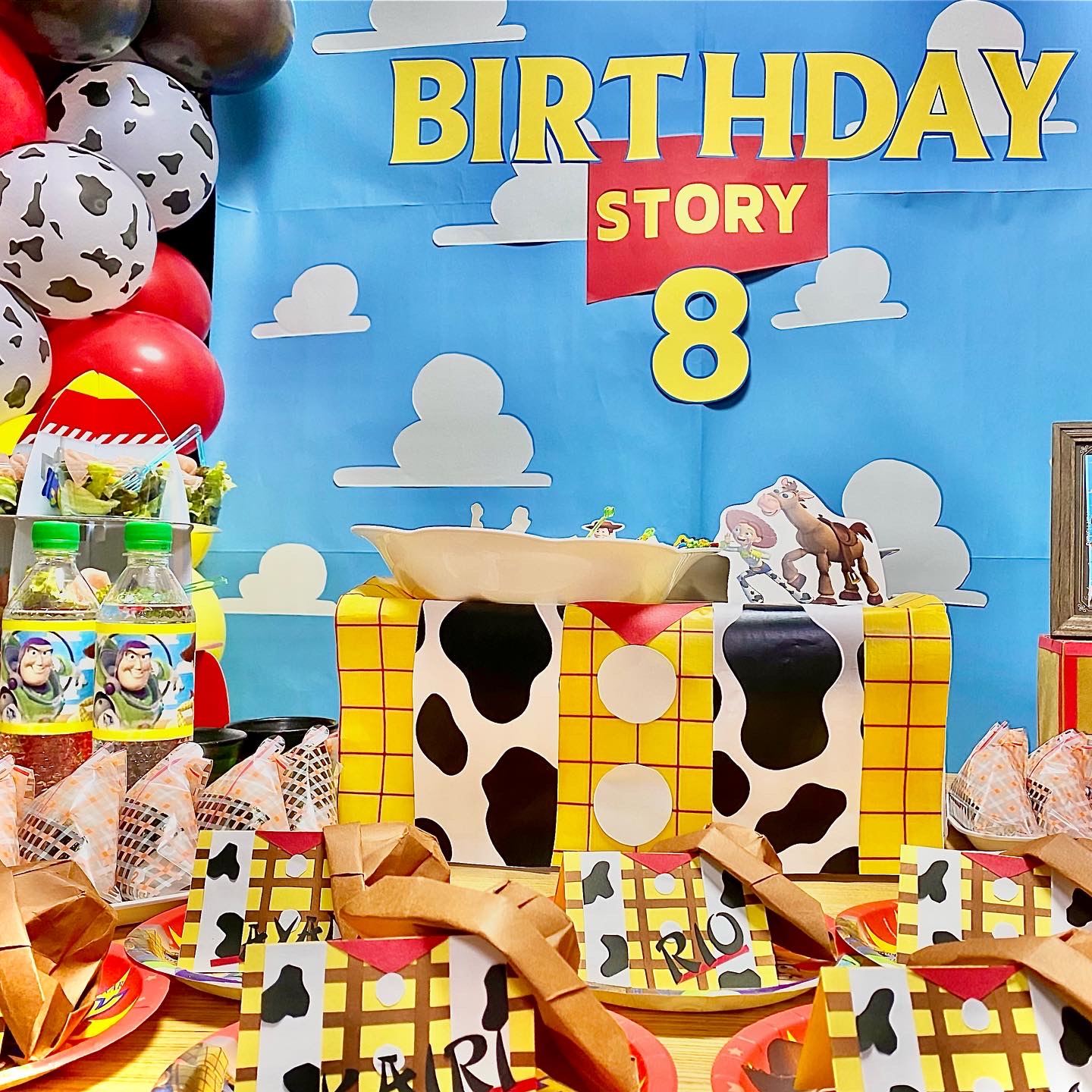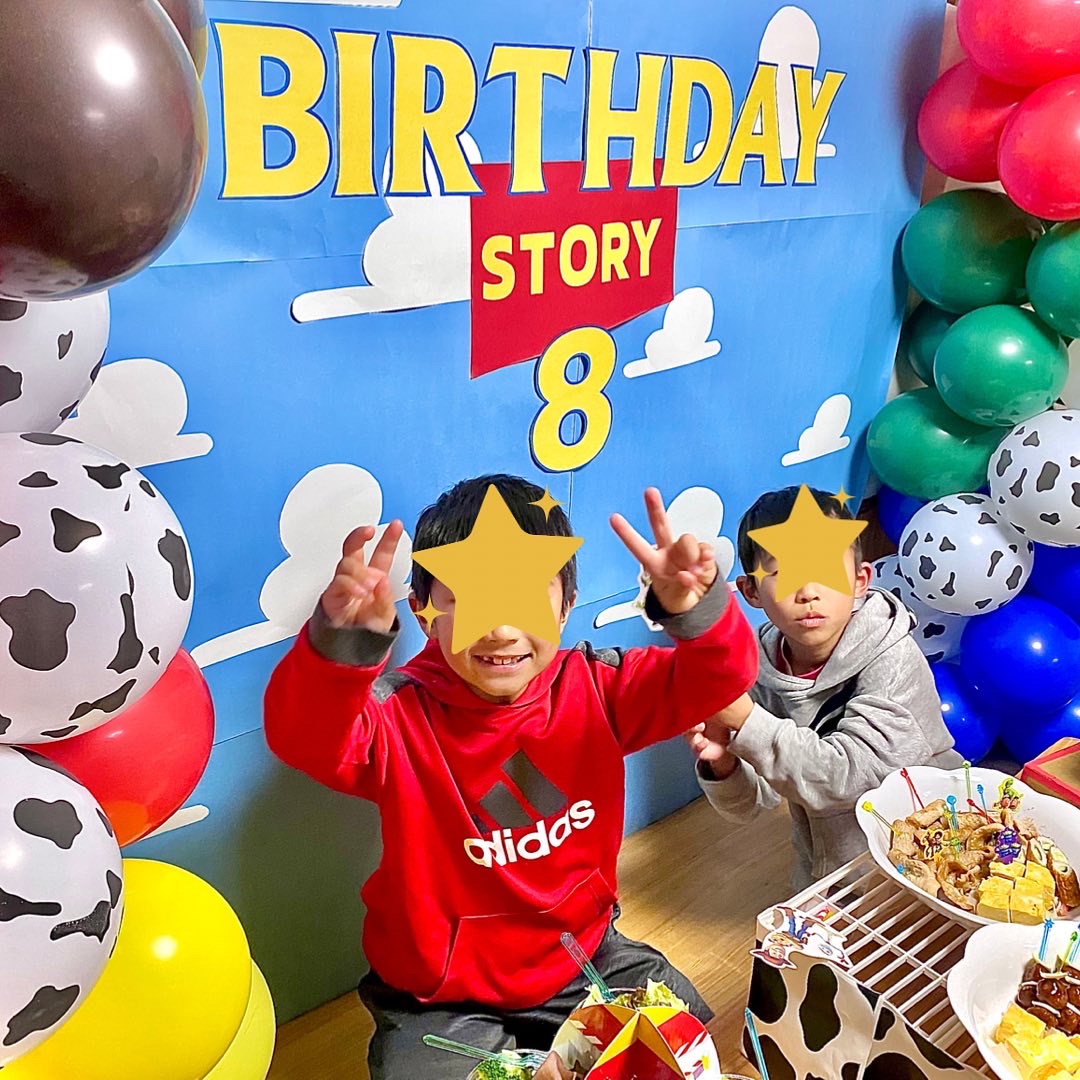 8歳になる男の子の誕生日で、テーマはトイストーリーデコレーション🎈✨