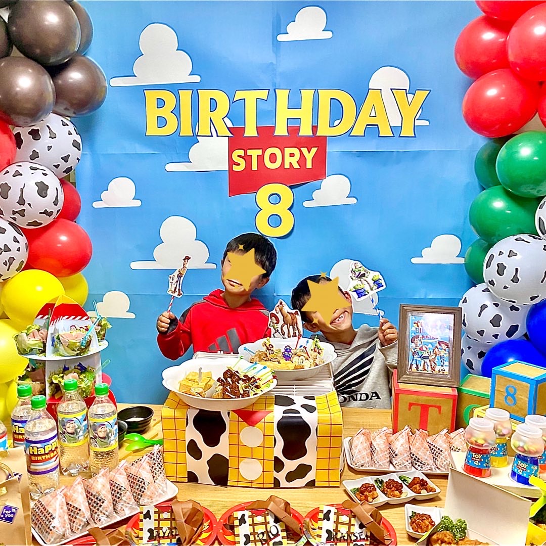 8歳になる男の子の誕生日で、テーマはトイストーリーデコレーション🎈✨