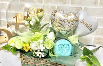 バルーンギフト&ソープカービングギフトセットです✨石鹸が良く見えるよう、普段のバルーンギフトで使用するカゴより少し浅め…